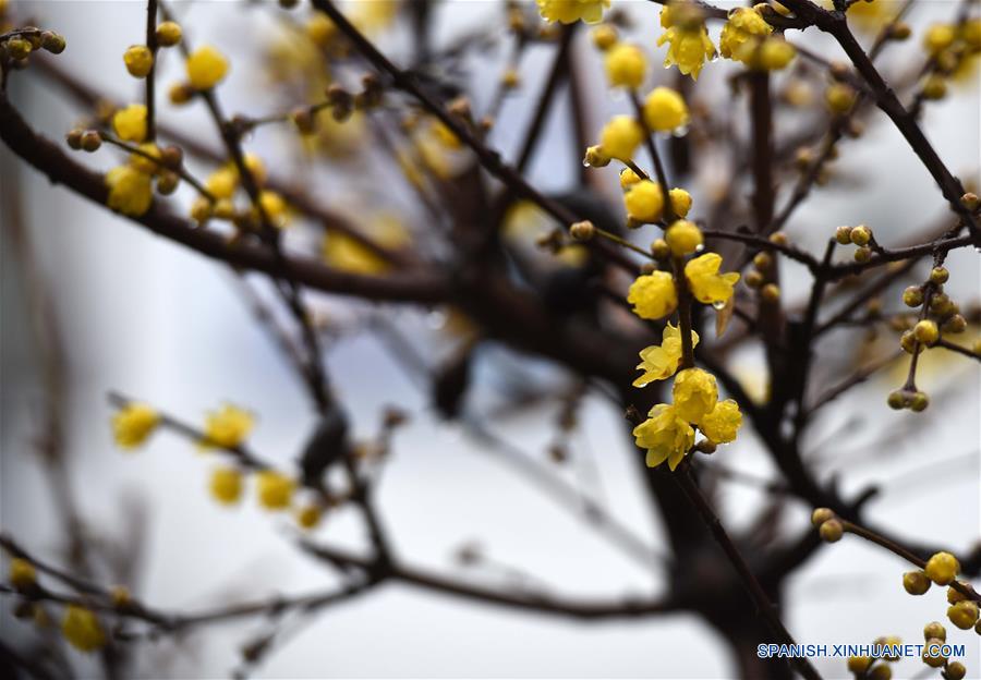 JIANGSU, diciembre 25, 2018 (Xinhua) -- Vista de las flores de ciruelo bajo la lluvia, en la ciudad de Huai'an, provincia de Jiangsu, en el este de China, el 25 de diciembre de 2018. (Xinhua/He Jinghua)