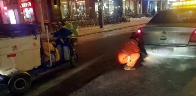 Y llega a tiempo a la Plaza Este de la Estación de Tren de Hankou para limpiar