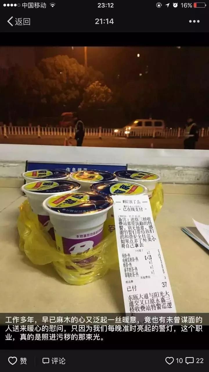 Las notas del pedido decía: "Entrega porfa a la policía especial de la estación de peaje, gracias por darnos una sociedad segura y armoniosa".