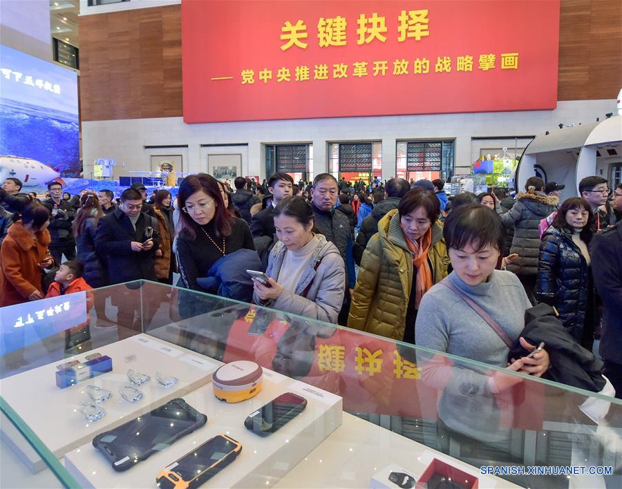 BEIJING, diciembre 25, 2018 (Xinhua) -- Personas visitan una gran exposición para conmemorar el 40 aniversario de la reforma y apertura de China, en el Museo Nacional de China en Beijing, capital de China, el 25 de diciembre de 2018. La exposición ha recibido a más de dos millones de visitantes desde su apertura. (Xinhua/Li He)