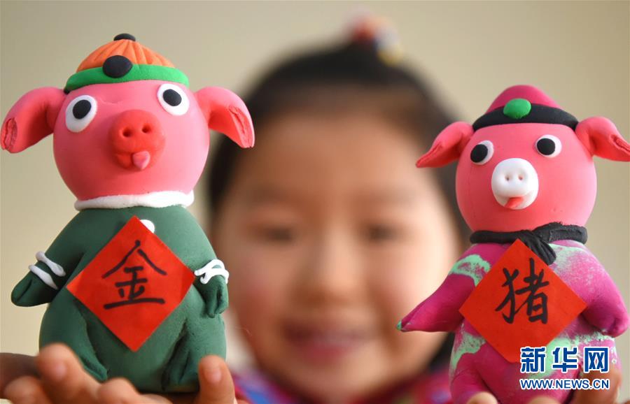 El 27 de diciembre, una ni?a en una guardería en el pueblo Yuezhuang del condado Yiyuan, en la ciudad de Zibo, provincia de Shandong, muestra figurillas con forma de cerditos de dibujos animados. Ese mismo día, los ni?os de la guardería fueron ense?ados por sus profesores a realizar las tradicionales figurillas de plastilina, harina y otros materiales con forma de cerditos de dibujos animados para dar la bienvenida al a?o nuevo. Agencia de Noticias Xinhua (Foto de Zhao Dongshan)