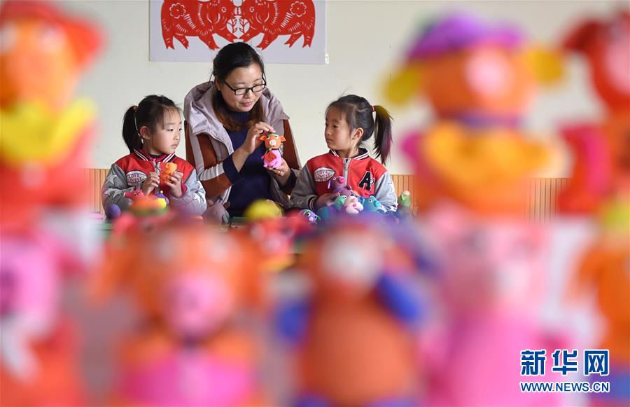 Zibo,Shandong,28/12/2018(El Pueblo en Línea)-El 27 de diciembre, los maestros y estudiantes de una guardería en el pueblo Yuezhuang del condado Yiyuan, en la ciudad de Zibo, provincia de Shandong, realizaron figurillas con forma de cerditos de dibujos animados. Ese mismo día, los ni?os de la guardería fueron ense?ados por sus profesores a realizar las tradicionales figurillas de plastilina, harina y otros materiales con forma de cerditos de dibujos animados para dar la bienvenida al a?o nuevo. Agencia de Noticias Xinhua (Foto de Zhao Dongshan)