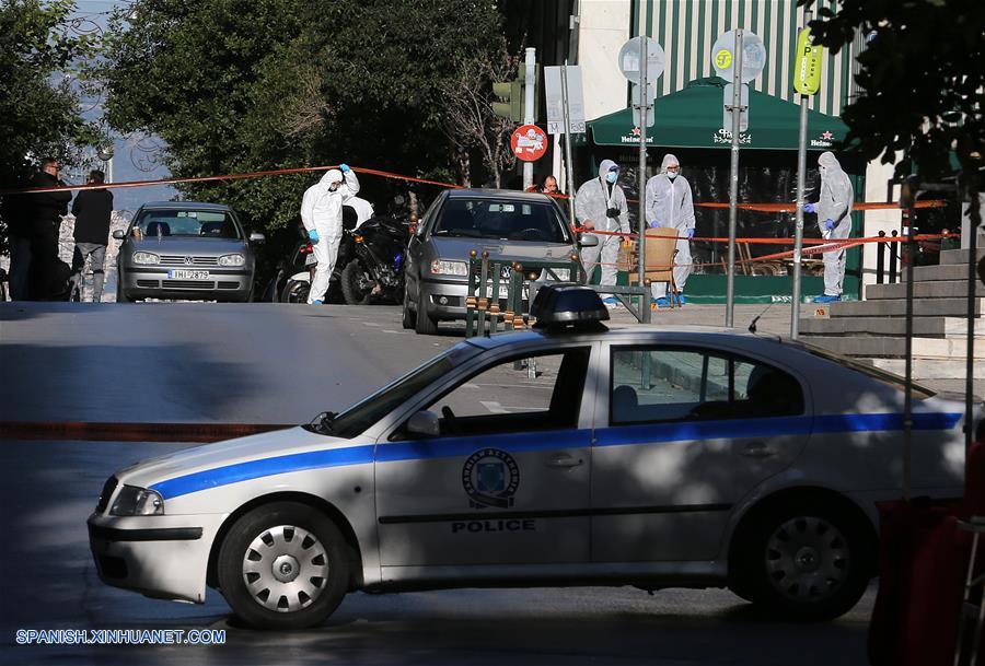 ATENAS, diciembre 27, 2018 (Xinhua) -- Elementos de seguridad acordonan el sitio donde se registró una explosión, en Atenas, Grecia, el 27 de diciembre de 2018. Un dispositivo de bomba explotó el jueves por la ma?ana frente a la iglesia cristiana ortodoxa griega en el centro de Atenas, informó la agencia nacional de noticias griega AMNA. (Xinhua/Marios Lolos)