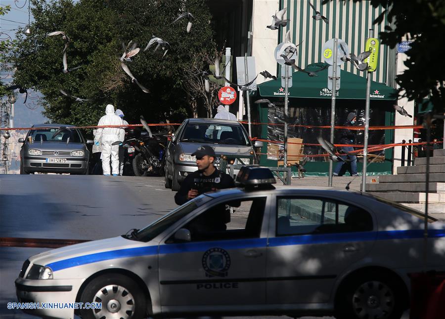 ATENAS, diciembre 27, 2018 (Xinhua) -- Un elemento de seguridad trabaja en el sitio donde se registró una explosión, en Atenas, Grecia, el 27 de diciembre de 2018. Un dispositivo de bomba explotó el jueves por la ma?ana frente a la iglesia cristiana ortodoxa griega en el centro de Atenas, informó la agencia nacional de noticias griega AMNA. (Xinhua/Marios Lolos)