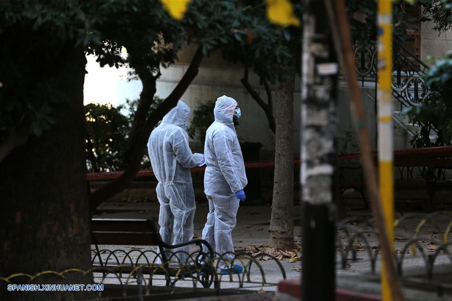 ATENAS, diciembre 27, 2018 (Xinhua) -- Elementos de seguridad trabajan en el sitio donde se registró una explosión, en Atenas, Grecia, el 27 de diciembre de 2018. Un dispositivo de bomba explotó el jueves por la ma?ana frente a la iglesia cristiana ortodoxa griega en el centro de Atenas, informó la agencia nacional de noticias griega AMNA. (Xinhua/Marios Lolos)