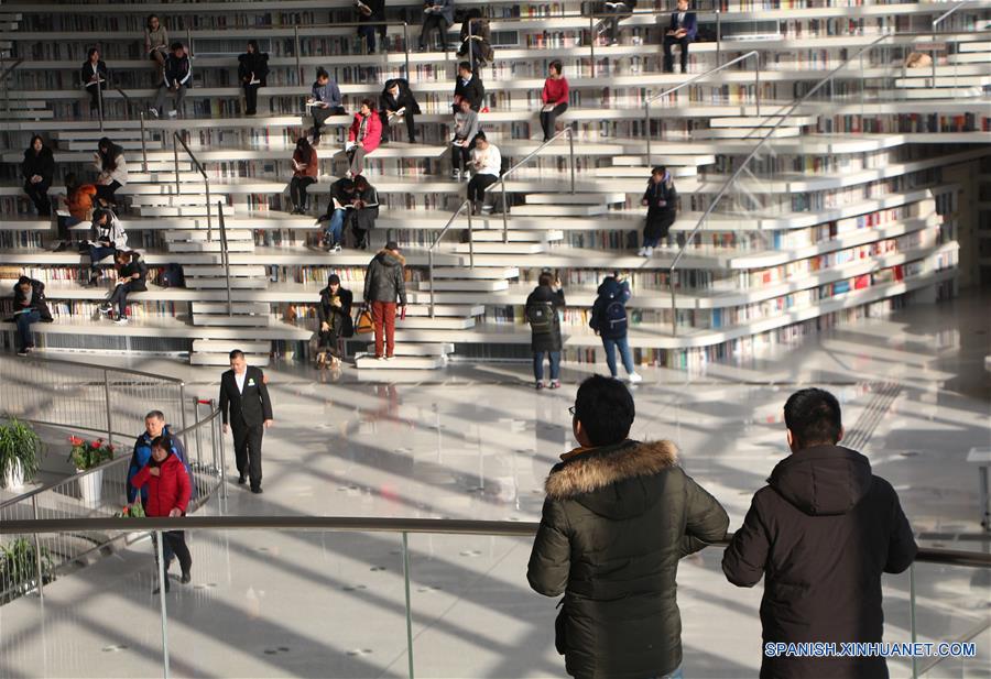 TIANJIN, diciembre 27, 2018 (Xinhua) -- Personas visitan la Librería de la Nueva Area de Binhai en Tianjin, en la Nueva Area de Binhai de la municipalidad de Tianjin, en el norte de China, el 27 de diciembre de 2018. La librería ha atraído a más de 2.8 millones de visitantes desde su apertura el 1 de octubre de 2017. (Xinhua/An Xiya)