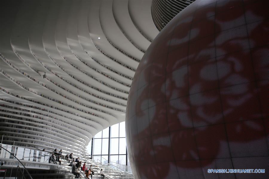 TIANJIN, diciembre 27, 2018 (Xinhua) -- Una empleada (i) trabaja en la Librería de la Nueva Area de Binhai en Tianjin, en la Nueva Area de Binhai de la municipalidad de Tianjin, en el norte de China, el 27 de diciembre de 2018. La librería ha atraído a más de 2.8 millones de visitantes desde su apertura el 1 de octubre de 2017. (Xinhua/Wu Jingdan)