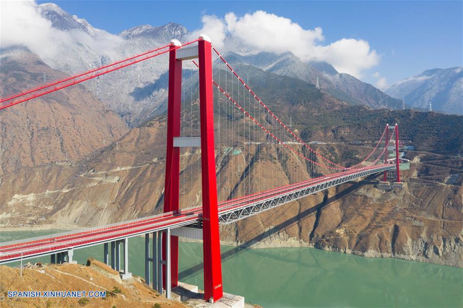 SICHUAN, diciembre 31, 2018 (Xinhua) -- Imagen del 30 de diciembre de 2018 de una vista aérea del gran puente Xingkang, en la autopista Ya'an-Kangding, en la provincia de Sichuan, en el suroeste de China. Una autopista que conecta las ciudades de Ya'an y Kangding, en la provincia suroccidental china de Sichuan, inició operaciones de prueba el lunes, con lo que la longitud total de las autopistas en la provincia alcanzó los 7.238 kilómetros. La construcción de la autopista se completó nueve meses antes de lo previsto. Se trata de la segunda carretera hacia la Prefectura Autónoma tibetana de Ganzi después de la Carretera Nacional 318, que conduce a Lhasa, capital de la Región Autónoma del Tibet. La ruta recién completada permitirá a los viajeros ir de Chengdu a Kangding, capital de Ganzi, en solo tres horas y media. (Xinhua/Jiang Hongjing)