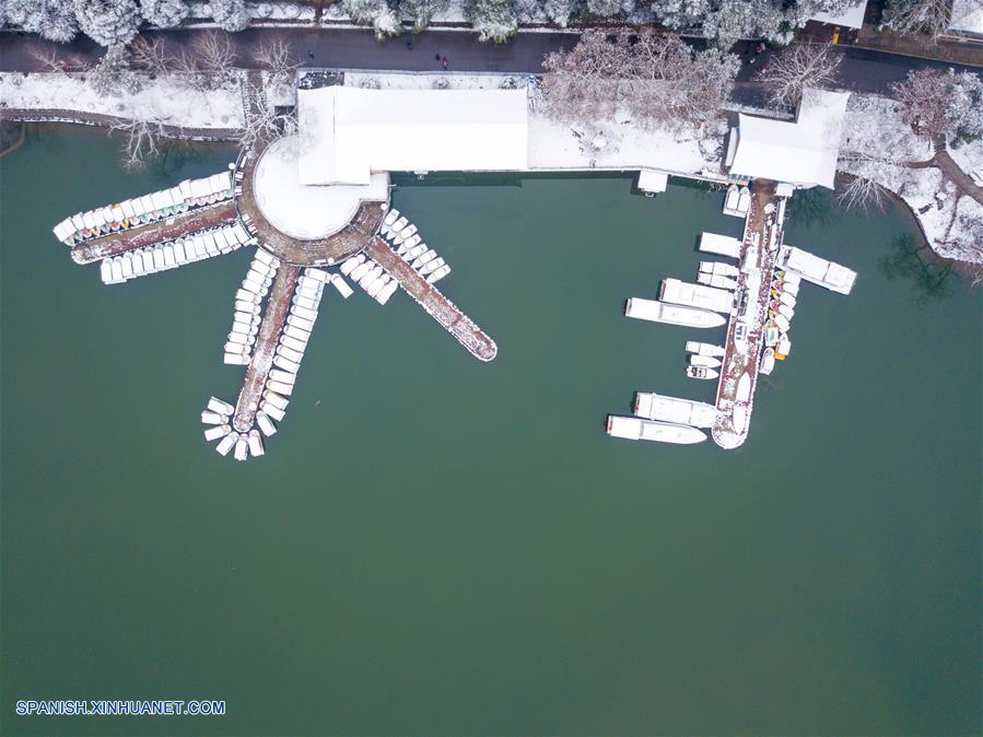 HUNAN, diciembre 31, 2018 (Xinhua) -- Vista aérea del paisaje nevado en un parque en Changsha, en la provincia de Hunan, en el centro de China, el 31 de diciembre de 2018. (Xinhua/Chen Zeguo)