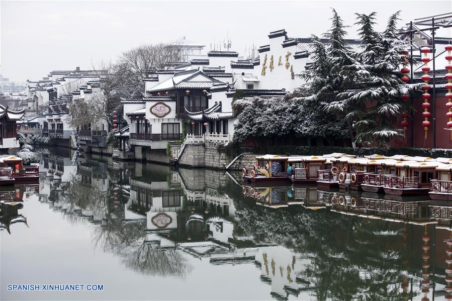 JIANGSU, diciembre 31, 2018 (Xinhua) -- Vista de edificios cubiertos de nieve en el Templo Resort de Confucio en Nanjing, capital de la provincia Jiangsu, en el este de China, el 31 de diciembre de 2018. (Xinhua/Wang Xin)