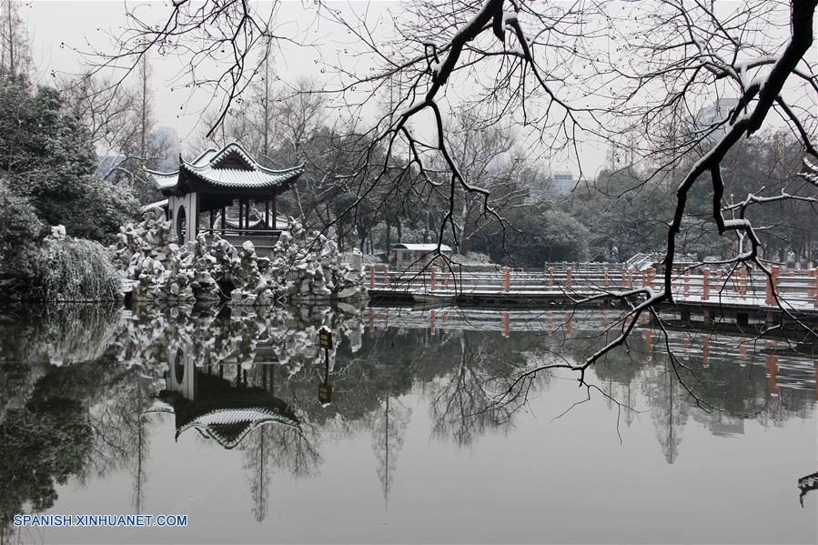 ANHUI, diciembre 31, 2018 (Xinhua) -- Vista del paisaje nevado en el Parque Jinghu, en la ciudad de Wuhu, en la provincia de Anhui, en el este de China, el 31 de diciembre de 2018. (Xinhua/Sun Bingchun)