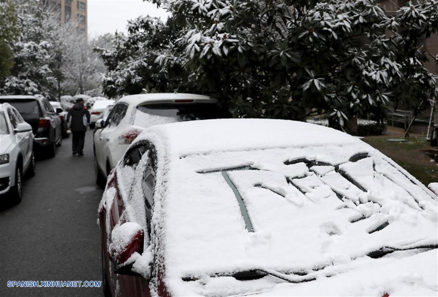SHANGHAI, diciembre 31, 2018 (Xinhua) -- Vista de coches cubiertos de nieve en el Distrito Minhang, en Shanghai, en el este de China, el 31 de diciembre de 2018. (Xinhua/Liu Ying)