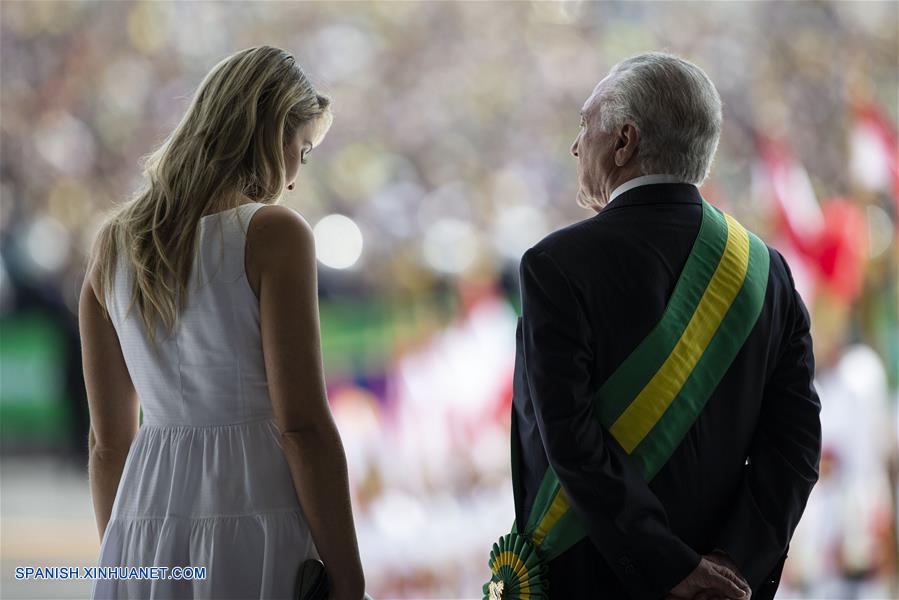 BRASILIA, enero 1, 2019 (Xinhua) -- El presidente de Brasil, Michel Temer (d) y la primera dama brasi?ela, Marcela Temer (i), esperan al presidente electo de Brasil, Jair Bolsonaro, previo a la ceremonia de transmisión de mando, en el Palacio de Planalto, en Brasilia, Brasil, el 1 de enero de 2019. Jair Bolsonaro, del Partido Social Liberal (PSL), juró el martes a las 15:10 hora local (17:10 GMT) como nuevo presidente de Brasil para un mandato de 4 a?os, en ceremonia realizada en el Congreso Nacional, en la ciudad de Brasilia. (Xinhua/Li Ming)
