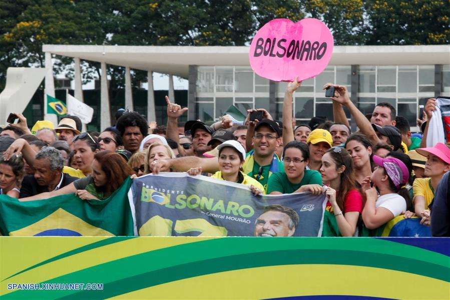 BRASILIA, enero 1, 2019 (Xinhua) -- Imagen cedida por la Presidencia de Brasil, de simpatizantes reaccionando durante la ceremonia de cambio de mando del presidente brasile?o Jair Bolsonaro, en el Palacio de Planalto, en Brasilia, Brasil, el 1 de enero de 2019. Jair Bolsonaro, del Partido Social Liberal (PSL), juró el martes a las 15:10 hora local (17:10 GMT) como nuevo presidente de Brasil para un mandato de 4 a?os, en ceremonia realizada en el Congreso Nacional, en la ciudad de Brasilia. (Xinhua/Clauber Cleber Caetano/Presidencia de Brasil)