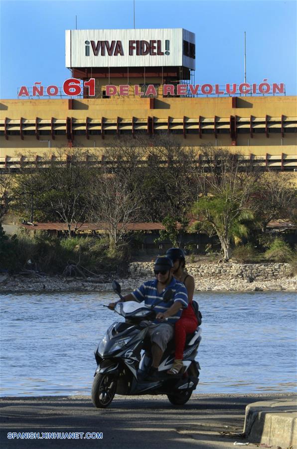 LA HABANA, enero 1, 2019 (Xinhua) -- Imagen del 30 de diciembre de 2018 de un motociclista transitando por una calle frente a un letrero alusivo a la Revolución cubana, en la localidad del Vedado en el Municipio Plaza de la Revolución, en La Habana, Cuba. Hace exactamente 60 a?os triunfó la Revolución Cubana, hecho que desde entonces y hasta hoy en día, marca pauta como fenómeno transformador causante de admiración o antipatía, pero ante el cual nadie es indiferente. El 1 de enero de 1959, en la oriental ciudad de Santiago de Cuba, el desaparecido líder Fidel Castro anunció la victoria, transitando por la adopción de medidas para algunos utópicas, que entregaron tierras a los campesinos, alfabetizaron a millones de personas y beneficiaron en general al pueblo. (Xinhua/Joaquín Hernández)