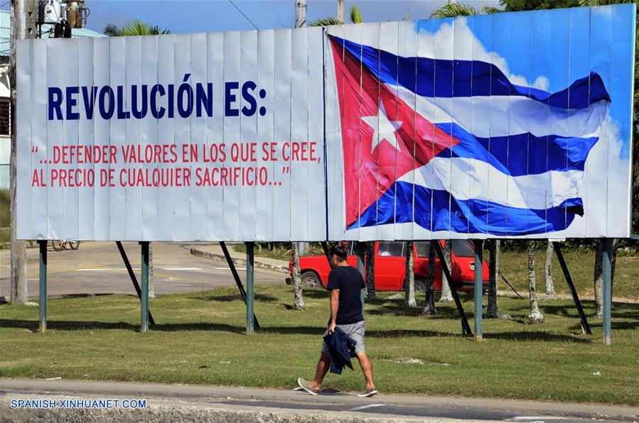 Imagen del 29 de diciembre de 2018 de una persona caminando por una avenida frente a un letrero alusivo a la Revolución cubana, en el Municipio Boyeros, en La Habana, Cuba. Hace exactamente 60 a?os triunfó la Revolución Cubana, hecho que desde entonces y hasta hoy en día, marca pauta como fenómeno transformador causante de admiración o antipatía, pero ante el cual nadie es indiferente. El 1 de enero de 1959, en la oriental ciudad de Santiago de Cuba, el desaparecido líder Fidel Castro anunció la victoria, transitando por la adopción de medidas para algunos utópicas, que entregaron tierras a los campesinos, alfabetizaron a millones de personas y beneficiaron en general al pueblo. (Xinhua/Joaquín Hernández)