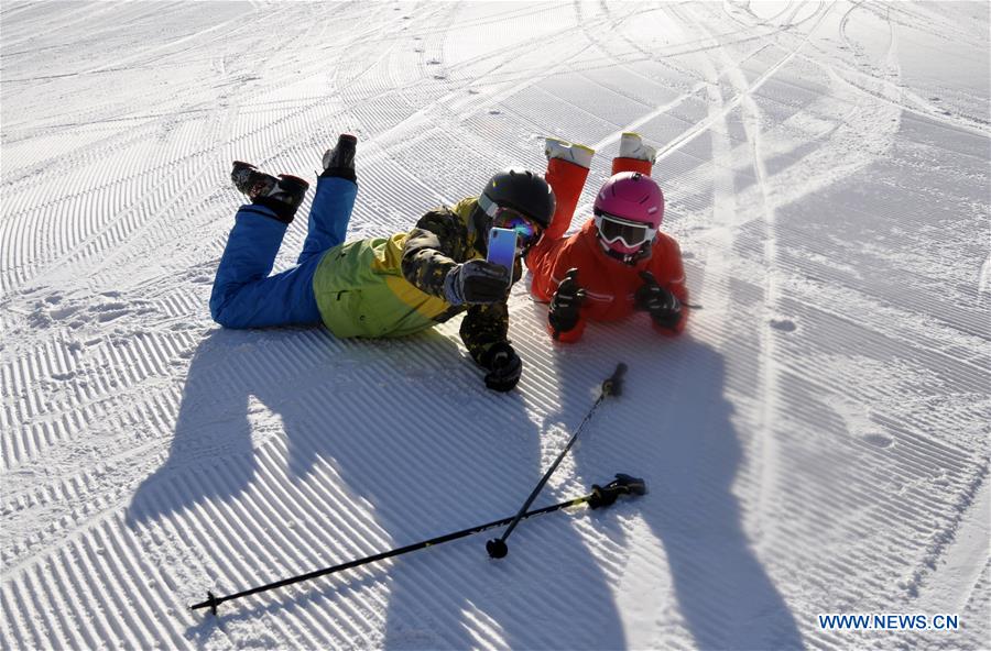 La gente disfruta de esquiar en un complejo turístico de Hulun Buir, Región Autónoma de Mongolia Interior, el 1 de enero del 2019. En toda China, se celebraron actividades en saludo al a?o nuevo. (Foto: Xinhua/ Han Leng)