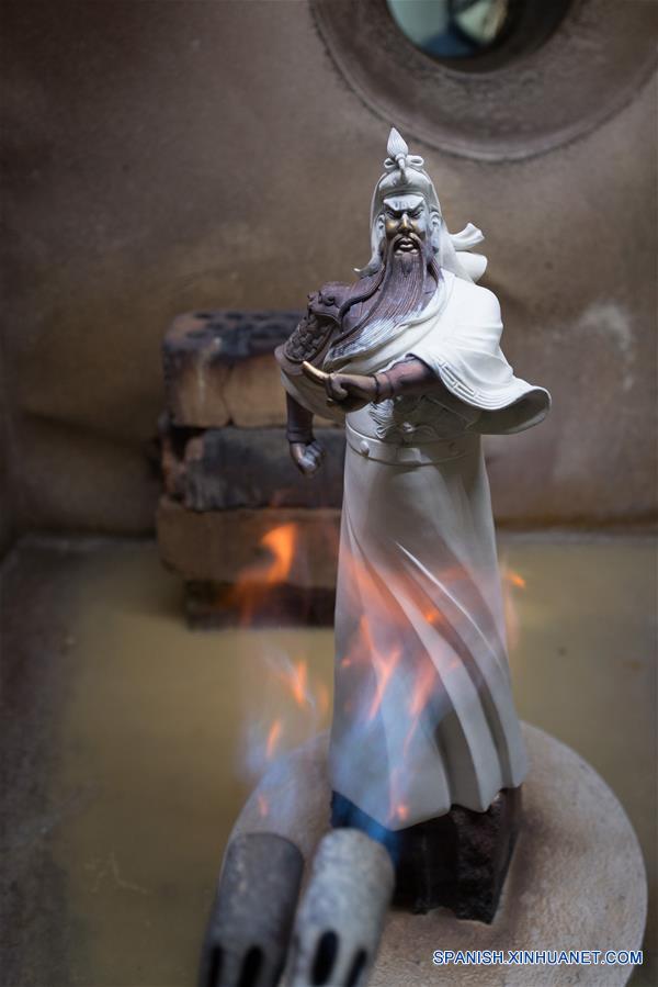 Un artesano elabora una obra de arte de cobre en el taller de una fábrica, en la ciudad de Jiande, provincia de Zhejiang, en el este de China, el 2 de enero de 2019. La empresa de producción de artículos sanitarios tradicionales, Tong Shifu, que significa maestro del cobre, se ha convertido en una empresa que dise?a y fabrica obras de arte de cobre en colaboración con un museo, una firma de dibujos animados y un estudio de artista. Con la producción anual alcanzando los 500 millones de yuanes (aproximadamente 72.9 millones de dólares estadounidenses), la campa?ía ha tenido éxito en la tranformación industrial. (Xinhua/Weng Xinyang)