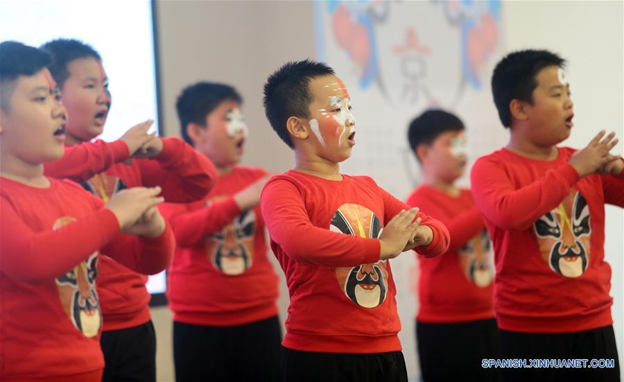 TIANJIN, enero 2, 2019 (Xinhua) -- Imagen del 26 de septiembre de 2018, de estudiantes interpretando Opera de Beijing en una escuela primaria en Tianjin, en el norte de China. Las autoridades chinas han urgido a las escuelas primarias y secundarias a mejorar la educación para lograr un desarrollo integral de los estudiantes. Según una directiva emitida conjuntamente por el Ministerio de Educación y otras ocho entidades, se pide a las escuelas ofrecer cursos de acuerdo con los planes de estudios nacionales en términos de cantidad y calidad. Está prohibido elevar de forma aleatoria los niveles de dificultad de los cursos y acelerar la velocidad haciendo caso omiso al currículo, de acuerdo con la circular. Tampoco se permite a las escuelas de ense?anza primaria y secundaria básica establecer ninguna "clase clave" o clases compuestas principalmente por estudiantes seleccionados por sus altos puntajes académicos o desempe?o sobresaliente, a las cuales generalmente se les asignan mejores profesores y herramientas o más fondos que a otras clases, a?ade. También se advierte a las escuelas primarias que no pueden llevar a cabo ningún examen en el que los resultados de los estudiantes incidan de forma notoria en la escuela secundaria por la que podrán ser admitidos. El documento también se?ala que no se debe dejar tarea escrita a los estudiantes de primer y segundo curso en las escuelas primarias, y, en cuanto a los deberes diarios para los de tercer a sexto curso, para terminarlos no se debe tardar más de 60 minutos, en tanto que para los de básica secundaria este tiempo no podrá superar los 90 minutos. (Xinhua/Liu Dongyue)