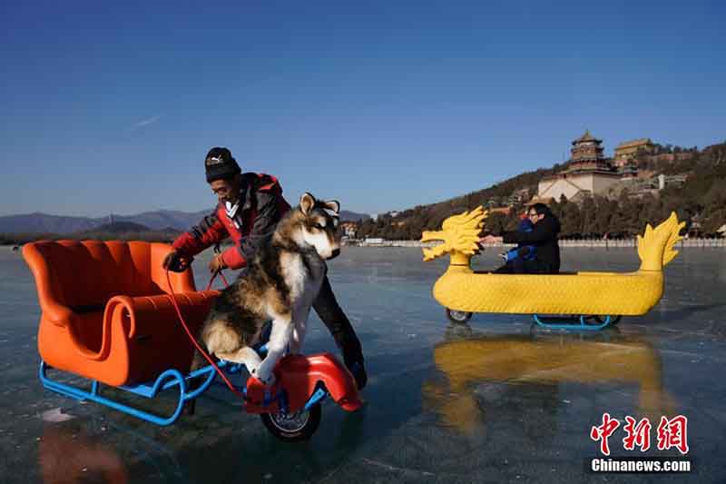 Beijing, 03/01/2019(El Pueblo en Línea) - Abierta desde este domingo, los visitantes disfrutan de un rato de sano esparcimiento en la pista de hielo del Lago Kunming, ubicada en el Palacio de Verano de Beijing. La superficie helada del Lago Kunming, de 700.000 metros cuadrados, es la pista de hielo natural más grande de Beijing. 30 de diciembre del 2018. [Foto: Chinanews. com]
