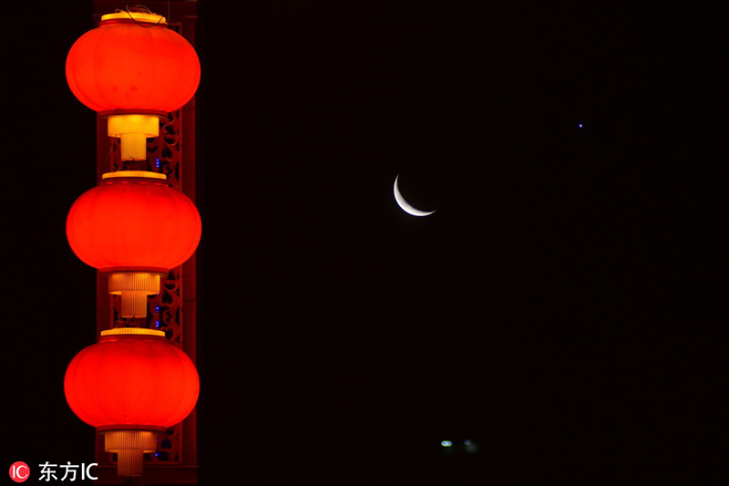 Temprano en la ma?ana, la Luna entró en conjunción con Venus. El cielo en Kuerle, Región Autónoma de Xinjiang Uygur fue privilegiado escenario para observar la esperada conjunción de la Luna y el planeta Venus. Después de las 5:00 de la ma?ana, los dos objetos estelares comenzaron a ser visibles en dirección sureste.Su máxima aproximación ocurrió a las 22:00 UTC del día primero de enero. La conjunción, que se puede apreciar desde cualquier país y a simple vista, tiene al planeta Júpiter y a la estrella Antares como testigos, 2 de enero del 2019. [Foto: IC]
