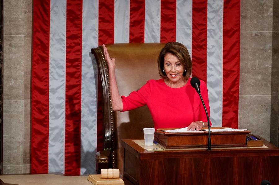 WASHINGTON D.C., enero 3, 2019 (Xinhua) -- Nancy Pelosi pronuncia un discurso luego de ser elegida como nueva presidenta de la Cámara de Representantes estadounidense, en el Capitolio, en Washington D.C., Estados Unidos, el 3 de enero de 2019. La representante Nancy Pelosi, demócrata por California, fue elegida el jueves como nueva presidenta de la Cámara de Representantes de Estados Unidos en el primer día de un nuevo y dividido Congreso. (Xinhua/Ting Shen)