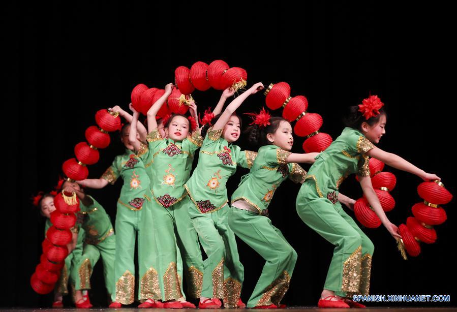 Imagen del 6 de enero de 2019 de estudiantes de la Escuela China de la Gran Muralla, realizando la danza popular de la etnia Han "Linterna Roja" durante la celebración del A?o Nuevo, organizada por el grupo de escuelas "Greater Philadelphia Chinese School of Union" (GPCSU, por sus siglas en inglés), en Filadelfia, Estados Unidos. Más de 100 jóvenes chino-estadounidenses encantaron a los aficionados a las danzas y trajes tradicionales de China en un gran espectáculo de conmemoración del A?o Nuevo. (Xinhua/Wang Ying)