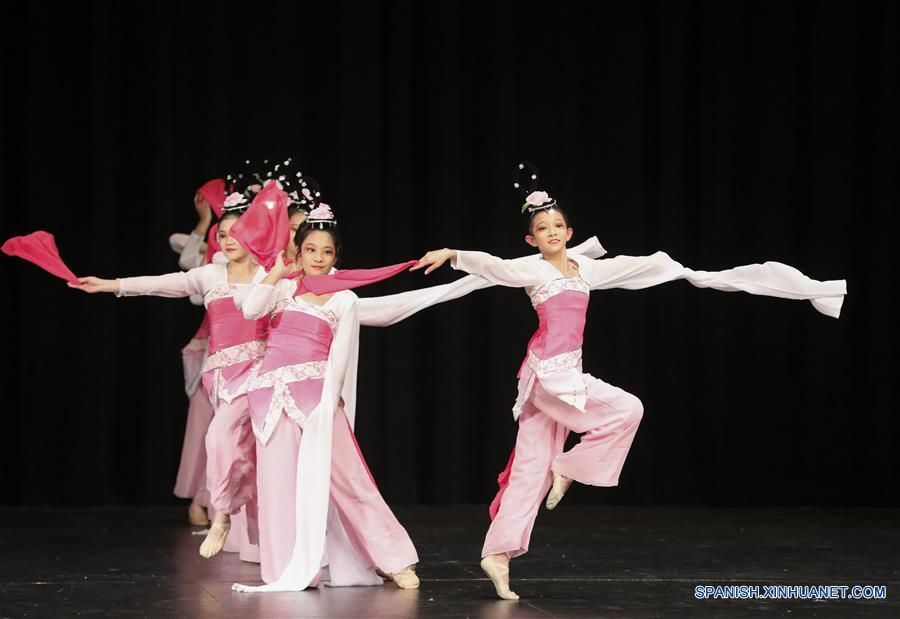 Imagen del 6 de enero de 2019 de estudiantes de la Escuela China de Chunhui, realizando una danza clásica china durante la celebración del A?o Nuevo, organizada por el grupo de escuelas "Greater Philadelphia Chinese School of Union" (GPCSU, por sus siglas en inglés), en Filadelfia, Estados Unidos. Más de 100 jóvenes chino-estadounidenses encantaron a los aficionados a las danzas y trajes tradicionales de China en un gran espectáculo de conmemoración del A?o Nuevo. (Xinhua/Wang Ying)