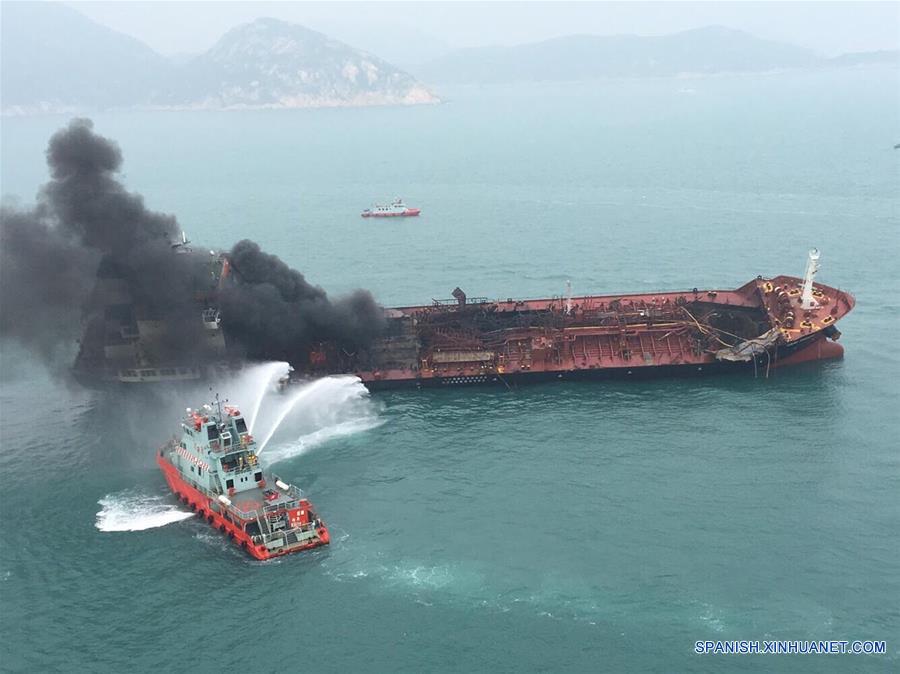 HONG KONG, 8 ene (Xinhua) -- Una persona murió, siete resultaron heridas y dos están desaparecidas luego de que un buque petrolero explotó y se incendió hoy martes frente a la isla de Lamma de Hong Kong.