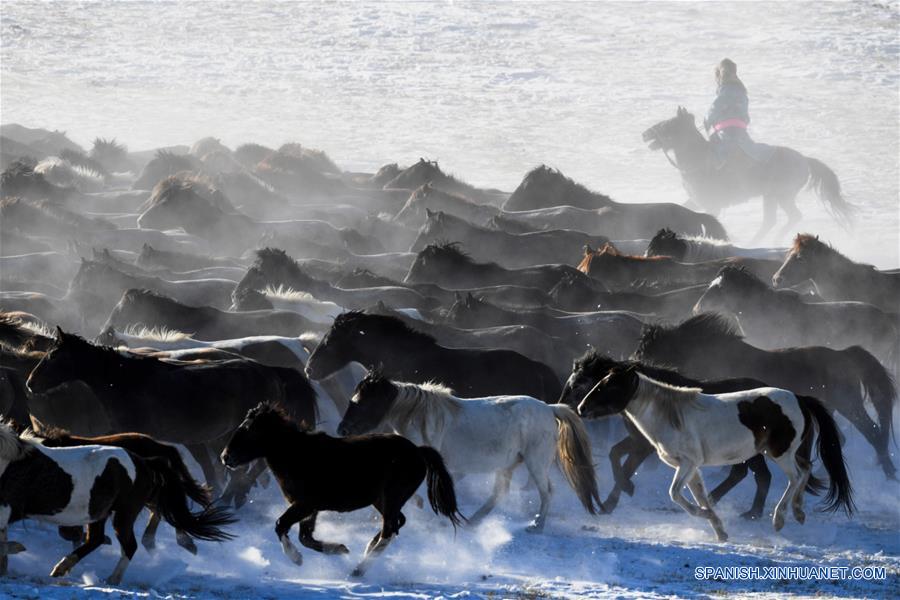 UJIMQIN, enero 8, 2019 (Xinhua) -- Un pastor doma caballos en la Bandera Ujimqin Oeste, en la Región Autónoma de Mongolia Interior, en el norte de China, el 8 de enero de 2019. (Xinhua/Liu Lei