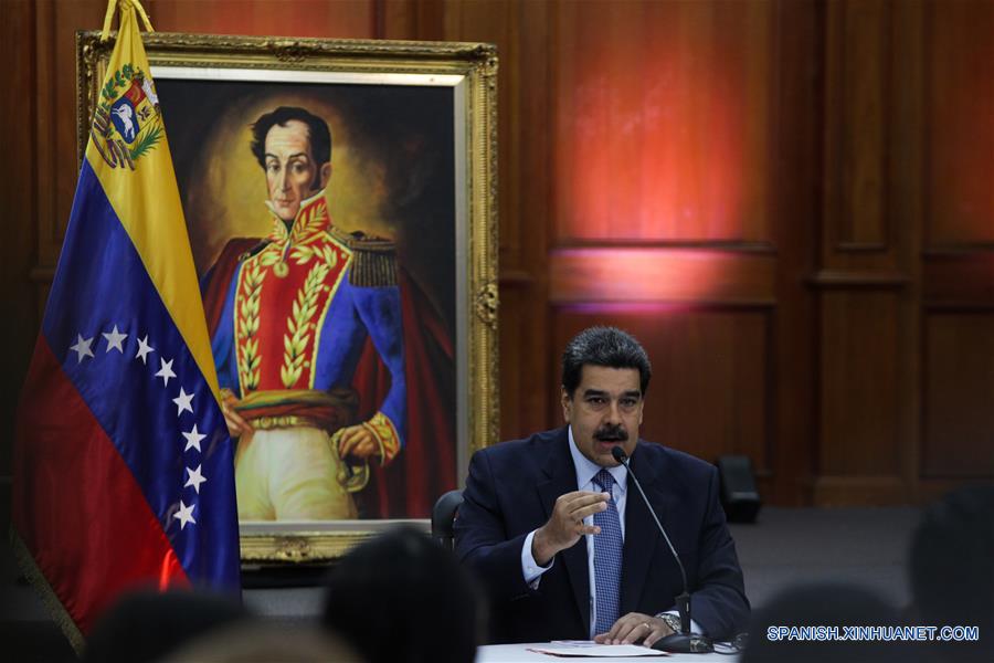 CARACAS, enero 9, 2019 (Xinhua) -- El presidente de Venezuela, Nicolás Maduro, participa durante una conferencia de prensa en el Palacio de Miraflores, en Caracas, Venezuela, el 9 de enero de 2019. El presidente venezolano, Nicolás Maduro, denunció el miércoles que en el país "está en marcha un golpe de Estado" alentado por el gobierno de Estados Unidos a través del llamado Grupo de Lima. "Lo que ha hecho el cártel (Grupo) de Lima de ordenar el derrocamiento del gobierno legítimo y constitucional de Venezuela está en marcha, está en marcha un golpe de Estado", se?aló Maduro. (Xinhua/Str)