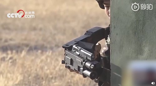 Un soldado chino utiliza una pistola para disparar desde las esquinas. (Foto: cctv.com)