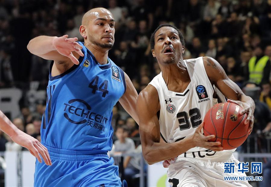 BELGRADO, enero 10, 2019 (Xinhua) -- Alex Renfroe (d), de Partizan, disputa el balón con Stefan Peno (i) de Alba, durante la ronda 2 de la Eurocopa de baloncesto, en Begrado, Serbia, el 9 de enero de 2019. (Xinhua/Predrag Milosavljevic)