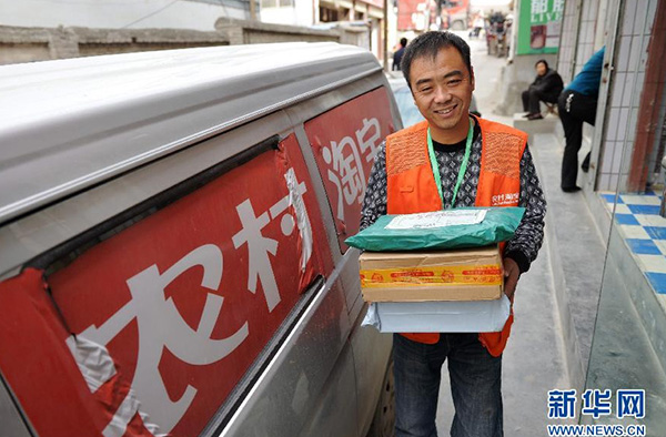 Entrega de correo postal en el pueblo Houba, Longnan, provincia de Gansu. (Foto: Xinhua)