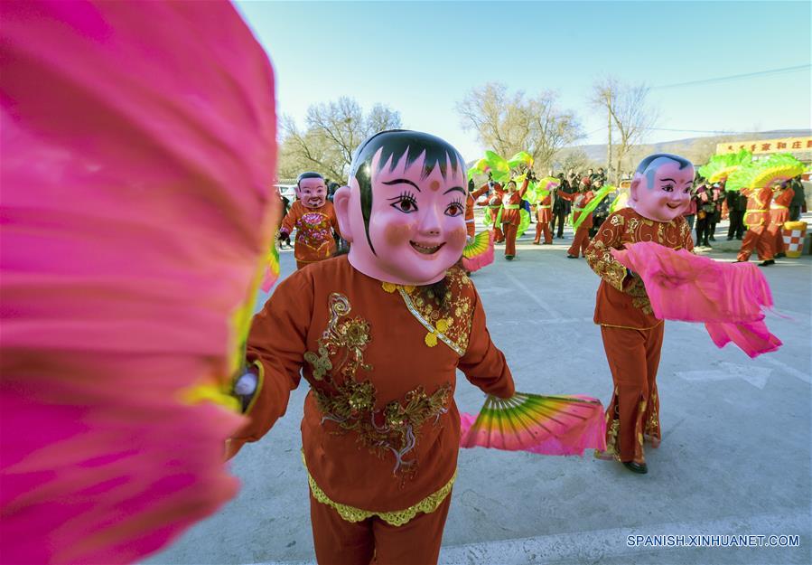 HOHHOT, enero 14, 2019 (Xinhua) -- Imagen del 13 de enero de 2019 de artistas tradicionales interpretando shehuo, un popular entretenimiento folclórico en China, durante un evento de patrimonio cultural intangible en Hohhot, capital de la Región Autónoma de Mongolia Interior, en el norte de China. El evento también fue una actividad para recibir el tradicional Festival de Primavera chino, el cual se celebrará el 5 de febrero de este a?o. (Xinhua/Ding Genhou)