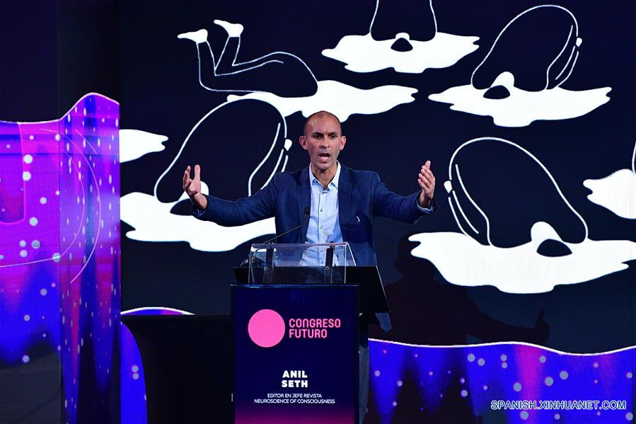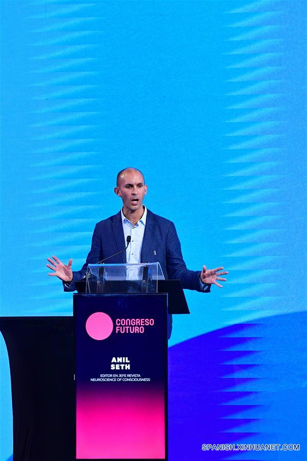El editor en jefe de la revista "Neuroscience of Consciousness" y neurocientífico británico, Anil Seth, participa en la ceremonia de inauguración de la octava versión del Congreso Futuro de Chile, en Santiago, capital de Chile, el 14 de enero de 2019. Como parte de las celebraciones del bicentenario de Chile en 2010, el Congreso chileno propuso conectar a la sociedad con los desafíos que el siglo XXI plantea, y así aportar a la democratización de los alcances y desafíos que éste traería. Así fue como nació el Congreso Futuro de Chile, que este a?o suma a 110 expertos del 14 al 20 de enero. Los temas que destacan en esta octava versión son la Inteligencia Artificial, Envejecimiento, Cambio Climático, Feminismo, Computación Cuántica, Neurociencia, Genética, Energías Renovables, Biodiversidad, Astronomía, Arquitectura y Microbiología. (Xinhua/Jorge Villegas)