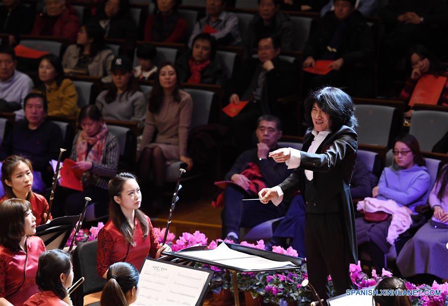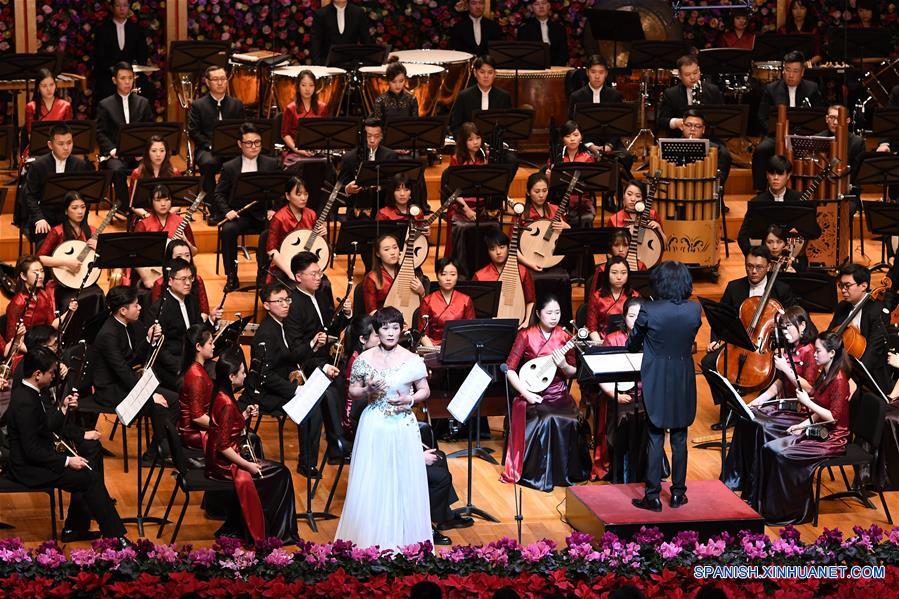 BEIJING, enero 15, 2019 (Xinhua) -- Imagen del 14 de enero de 2019 de artistas realizando una interpretación durante el concierto sinfónico original "nueva era", llevado a cabo en Beijing, capital de China. (Xinhua/Jin Liangkuai)
