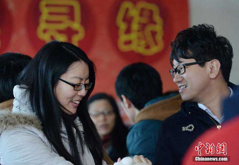 Un hombre y una mujer en una actividad de citas en Shanghai. (Foto / Chinanews.com)