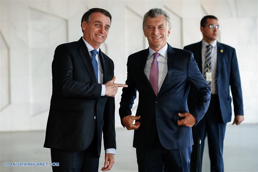 BRASILIA, enero 16, 2019 (Xinhua) -- Imagen cedida por la Presidencia de Brasil, del presidente brasile?o, Jair Bolsonaro (i), posando con su homólogo de Argentina, Mauricio Macri (c), en Brasilia, Brasil, el 16 de enero de 2019. Los gobiernos de Brasil y Argentina acordaron el miércoles trabajar "para revisar el arancel externo común, mejorar el acceso a mercados y avanzar en facilitación de comercio y convergencia regulatoria" en el ámbito del Mercosur. El consenso se alcanzó tras un encuentro en Brasilia entre los presidentes de Brasil, Jair Bolsonaro, y de Argentina, Mauricio Macri. (Xinhua/Alan Santos/Presidencia de Brasil)