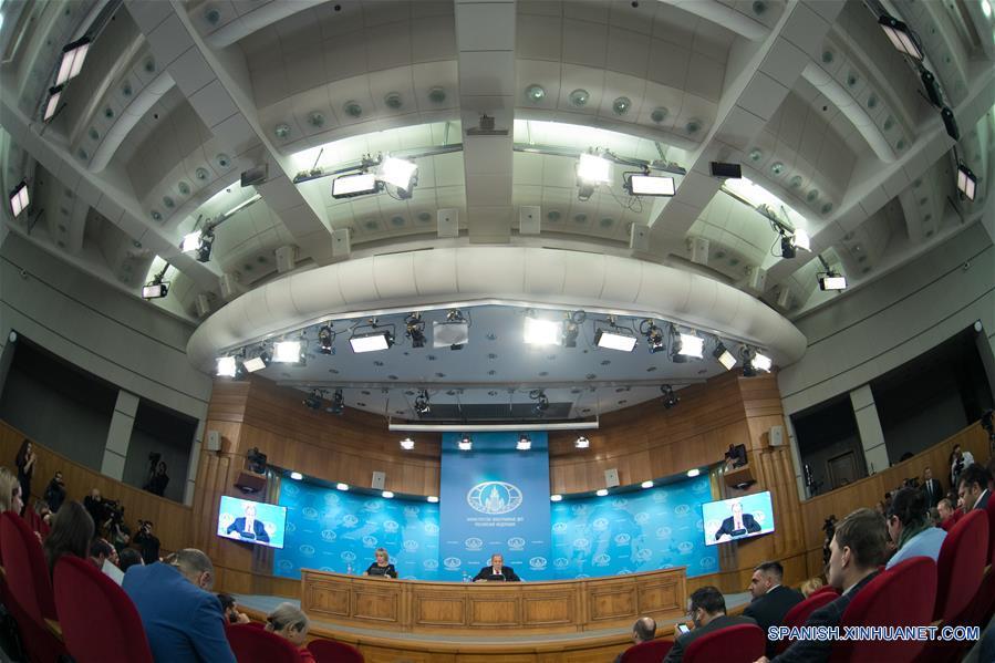 MOSCU, enero 16, 2019 (Xinhua) -- El ministro de Relaciones Exteriores de Rusia, Sergei Lavrov, sostiene su conferencia de prensa anual, en Moscú, Rusia, el 16 de enero de 2019. (Xinhua/Bai Xueqi)