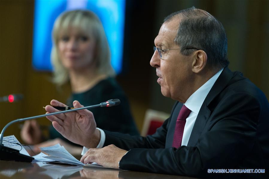 MOSCU, enero 16, 2019 (Xinhua) -- El ministro de Relaciones Exteriores de Rusia, Sergei Lavrov, sostiene su conferencia de prensa anual, en Moscú, Rusia, el 16 de enero de 2019. (Xinhua/Bai Xueqi)