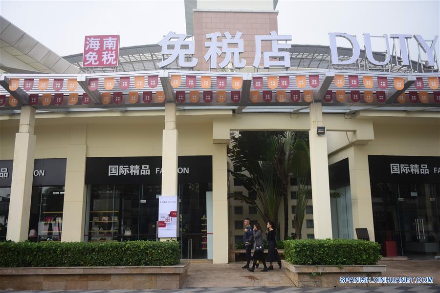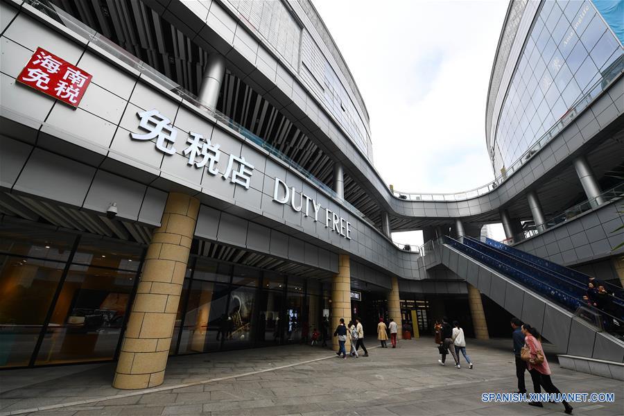 Personas entran a la nueva tienda libre de impuestos en Haikou, capital de la provincia de Hainan, en el sur de China, el 19 de enero de 2019. Dos nuevas tiendas libres de impuestos se abrieron el sábado en la provincia insular de Hainan, en el sur de China, lo que eleva el total de este tipo de establecimiento a cuatro en este popular destino turístico. Los dos emplazamientos, uno en la capital provincial de Haikou y el otro en el distrito de Boao de la ciudad de Qionghai, venden productos de 38 categorías libres de impuestos, que van desde perfumes y cosméticos hasta bolsos y maletas. (Xinhua/Guo Cheng)