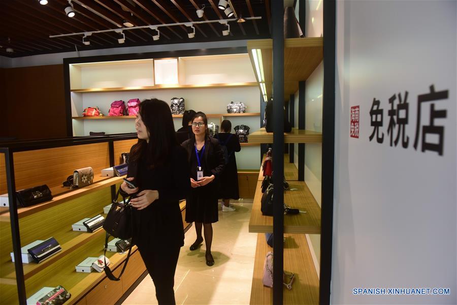 HAINAN, enero 19, 2019 (Xinhua) -- Personas observan artículos en la nueva tienda libre de impuestos en Haikou, capital de la provincia de Hainan, en el sur de China, el 19 de enero de 2019. Dos nuevas tiendas libres de impuestos se abrieron el sábado en la provincia insular de Hainan, en el sur de China, lo que eleva el total de este tipo de establecimiento a cuatro en este popular destino turístico. Los dos emplazamientos, uno en la capital provincial de Haikou y el otro en el distrito de Boao de la ciudad de Qionghai, venden productos de 38 categorías libres de impuestos, que van desde perfumes y cosméticos hasta bolsos y maletas. (Xinhua/Guo Cheng)