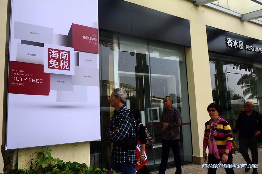 Personas caminan frente a la nueva tienda libre de impuestos en Boao, de la provincia de Hainan, en el sur de China, el 19 de enero de 2019. Dos nuevas tiendas libres de impuestos se abrieron el sábado en la provincia insular de Hainan, en el sur de China, lo que eleva el total de este tipo de establecimiento a cuatro en este popular destino turístico. Los dos emplazamientos, uno en la capital provincial de Haikou y el otro en el distrito de Boao de la ciudad de Qionghai, venden productos de 38 categorías libres de impuestos, que van desde perfumes y cosméticos hasta bolsos y maletas. (Xinhua/Guo Cheng)