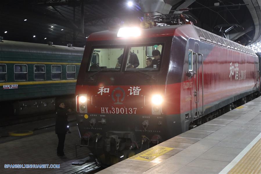 BEIJING, enero 2O, 2019 (Xinhua) -- Empleados examinan el tren K4051 hacia la ciudad de Nantong, provincia de Jiangsu, en el este de China, en la Estación de Ferrocarril de Beijing, durante el primer día del frenesí de viajes por el Festival de Primavera, en Beijing, capital de China, el 20 de enero de 2019. Millones de chinos regresan a sus pueblos natales cada a?o para celebrar el A?o Nuevo Lunar, o Festival de Primavera, formando así la temporada alta del Festival de Primavera. El Festival de Primavera, o A?o del Cerdo en el calendario lunar chino, empezará el 5 de febrero de 2019. Los 40 días del frenesí de viajes por el Festival de Primavera empieza el 21 de enero, en el que se espera que se realicen 3 billones de viajes. (Xinhua/Xing Guangli)