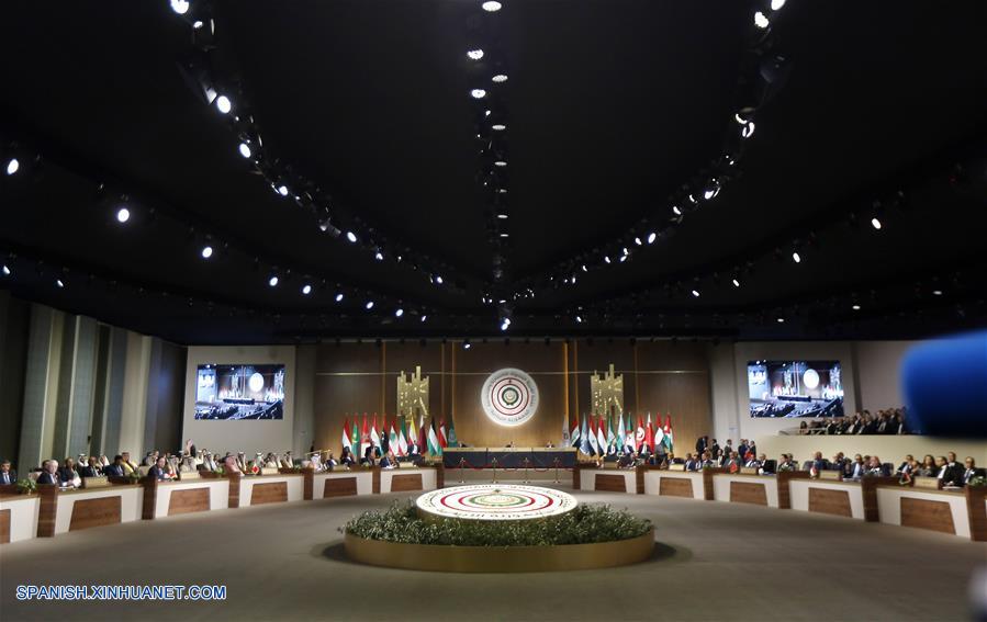 BEIRUT, enero 20, 2019 (Xinhua) -- Personas participan en la cuarta Cumbre Arabe de Desarrollo Económico y Social, en Beirut, Líbano, el 20 de enero de 2019. De acuerdo con información de la prensa local, la cuarta Cumbre Arabe de Desarrollo Económico y Social inició el domingo en Beirut. (Xinhua/Bilal Jawich)