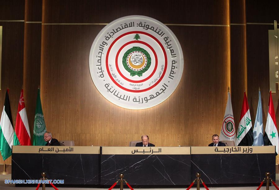 BEIRUT, enero 20, 2019 (Xinhua) -- Personas participan en la cuarta Cumbre Arabe de Desarrollo Económico y Social, en Beirut, Líbano, el 20 de enero de 2019. De acuerdo con información de la prensa local, la cuarta Cumbre Arabe de Desarrollo Económico y Social inició el domingo en Beirut. (Xinhua/Bilal Jawich)