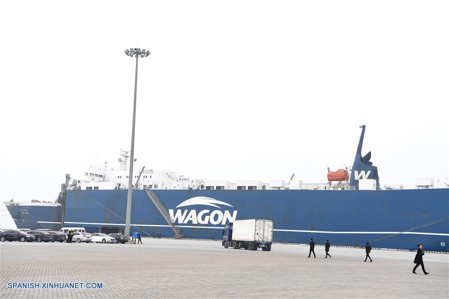 FUJIAN, enero 20, 2019 (Xinhua) -- Vista de un carguero en un puerto en Pingtan, en la provincia de Fujian, en el sureste de China, el 20 de enero de 2019. Un barco con más de 700 toneladas de cargamento llegó a un puerto en Pingtan el domingo despúés de que una ruta directa de carga marítima abrió el sábado, entre Kaohsiung, Taiwán, en el sureste de China y Pingtan. (Xinhua/Jiang Kehong)