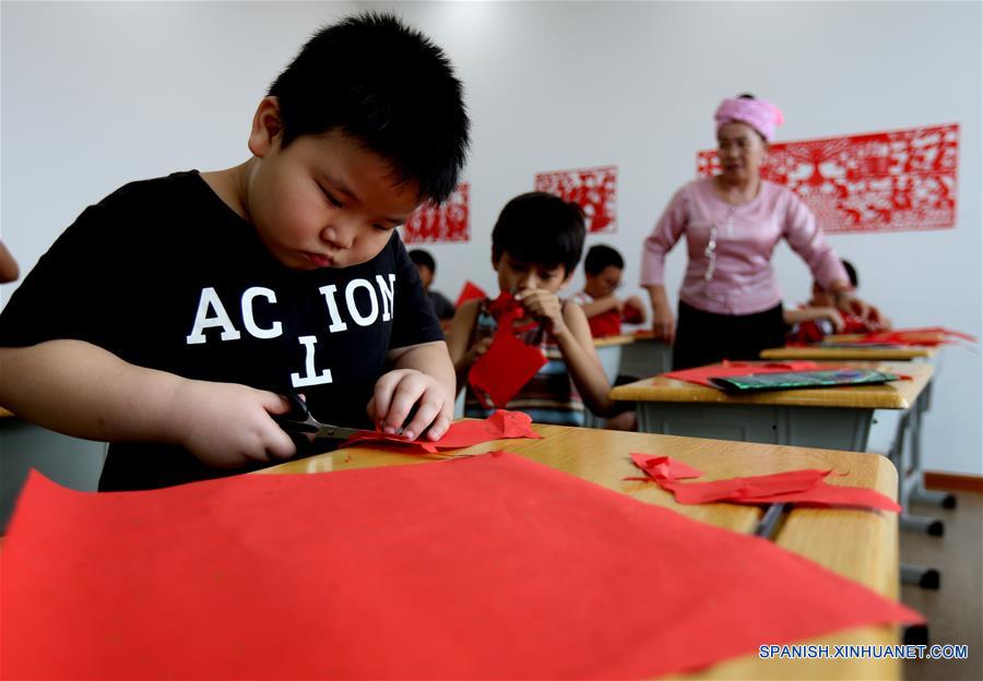Ni?os aprenden a hacer corte de papel tradicional chino, durante la Semana Cultural China-Myanmar, en Yangón, Myanmar, el 19 de enero de 2019. La Semana Cultural de China-Myanmar fue lanzada el miércoles Yangon, Nay Pyi Taw y Mandalay, y se llevará a cabo hasta el domingo. (Xinhua/U Aung)