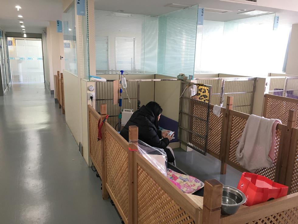 Un hospital en Nanjing, provincia de Jiangsu del este de China, ofrece camas y sofás para que los propietarios puedan pasar la noche y cuidar a sus mascotas. [Foto provista a chinadaily.com.cn]